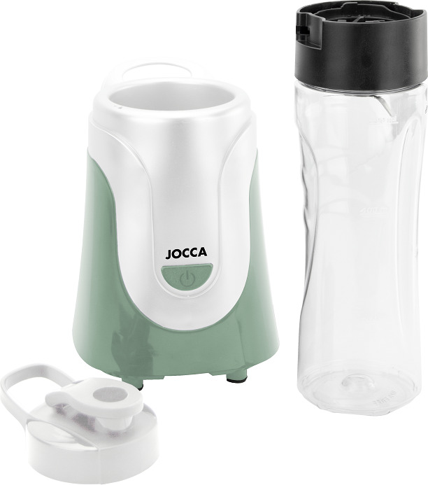 La batidora personal de Jocca es muy práctica para preparar rápidamente zumos o batidos de proteína directamente sobre la botella ¡Listo para batir y usar! Cuenta con cuatro cuchillas de acero inoxidable para licuar gran variedad de alimentos. La pieza puede extraerse para lavarla con más facilidad..Incluye una botella de plástico muy resistente de 600ml de capacidad, un tape con cierre hermético que es perfecto para beber directamente de la botella y evitar derrames, gracias al asa que incorpora es ideal para viajar con la bebida ahí dónde desees..La nueva gama/ familia de Jocca te trae productos donde tu cocina ganará elegancia, su color blanco y verde atraerá todas las miradas, entre ellos podrás encontrar este fantástica batidora masadora Jocca a conjunto..- Botella de plástico libre de BPA y apta para lavavajillas.- Capacidad de la botella: 600 ml.- Cuchillas de acero inoxidable para triturar hielo.- Solo incluye 1 botella.- Pies antideslizantres.- 100-230V 50-60Hz.- 300W