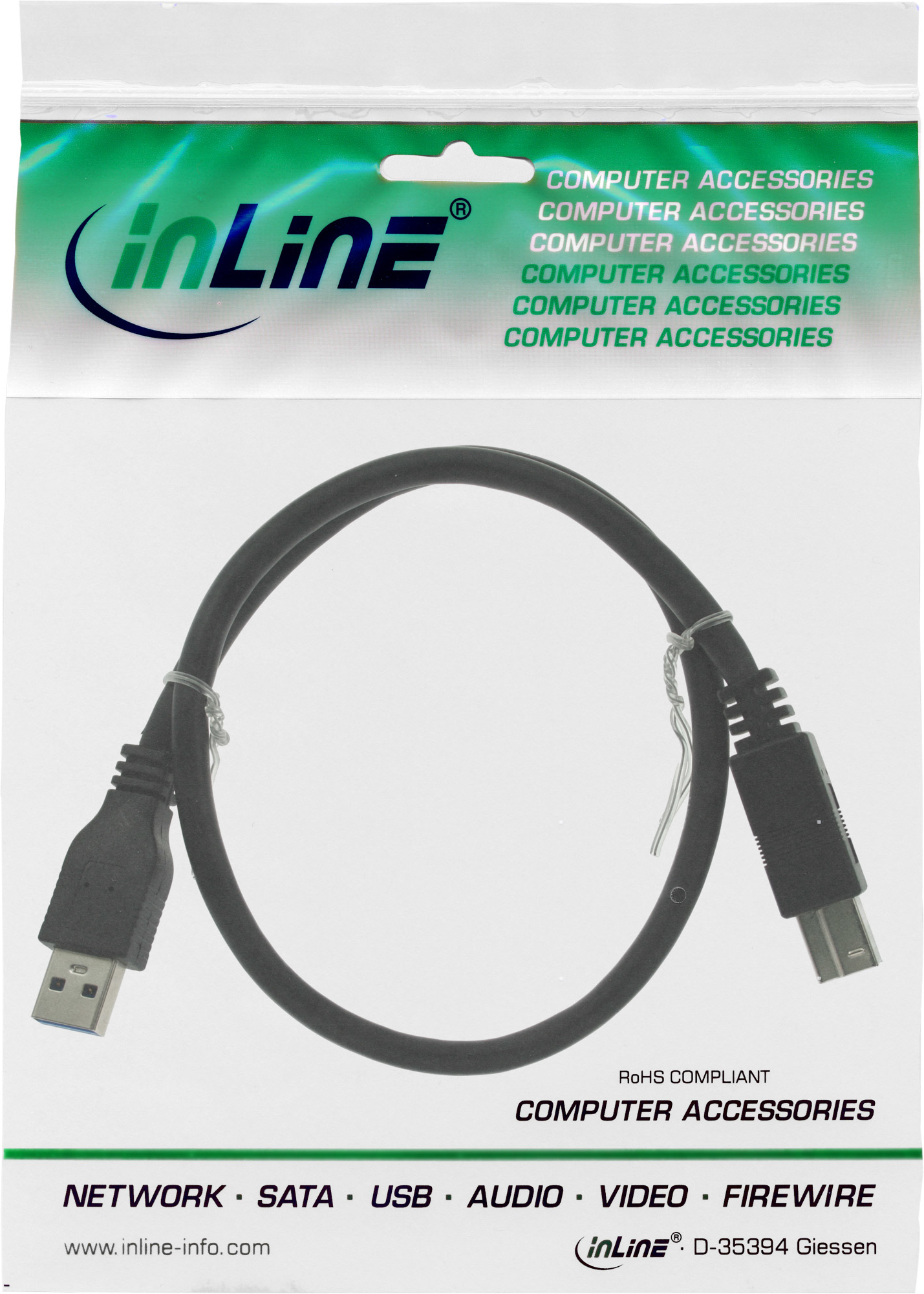 InLine 35303. Longitud de cable: 0,3 m, Conector 1: USB A, Conector 2: USB B, Versión USB: USB 3.2 Gen 1 (3.1 Gen 1), Contactos del conector chapado: Oro, Color del producto: Negro