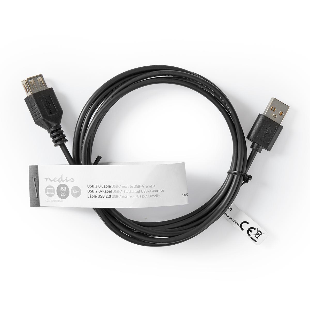 Nedis CCGT60010BK20. Longitud de cable: 2 m, Conector 1: USB A, Conector 2: USB A, Versión USB: 2.0, Rango máximo de transferencia de datos: 480 Mbit/s, Contactos del conector chapado: Níquel, Color del producto: Negro