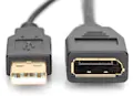 «Conecte mediante este adaptador de audio/vídeo HD digital de alto rendimiento su dispositivo de salida HDMI con su dispositivo de entrada DP.\n»\n\n- Convierte señales HDMI en señales DisplayPort\n- Entrada HDMI => salida DisplayPort con conexión USB A para la alimentación eléctrica\n- Instalación Plug and Play\n- Posibilita una experiencia definitiva de 4K con resoluciones Ultra-HD de hasta 3840 x 2160 píxeles y velocidad High-Speed con una velocidad de imagen de 30 Hz\n- No requiere controladores ni fuente de alimentación\n- El bloqueo del conector DisplayPort evita que se salga del puerto de gráficos; no se interrumpe la conexión durante el uso del PC\n- Los contactos niquelados apoyan la transferencia segura de las señales con unas resistencias de paso reducidas y el trenzado triple posibilita un apantallamiento ininterrumpido\n\n«Con el adaptador 4K HDMI - HDMI a DisplayPort de DIGITUS® puede conectar su ordenador portátil con un segundo monitor. De esta manera dispone de una pantalla adicional para trabajar de manera más eficiente. Los documentos, tablas y páginas web se pueden mostrar en varias pantallas. El cable adaptador soporta unas resoluciones de hasta 4K con 30 Hz. Disfrute de una calidad de imagen perfectamente nítida con colores más intensos y una riqueza de detalles netamente mayor que en los HD convencionales. El adaptador transmite contenidos Ultra HD a su monitor DisplayPort y soporta Surround-Audio de 7.1 canales.\nEn la mayoría de las condiciones, la fuente de HDMI puede suministrar suficiente energía a este producto. La conexión USB-A solo se conecta si no hay suficiente energía»