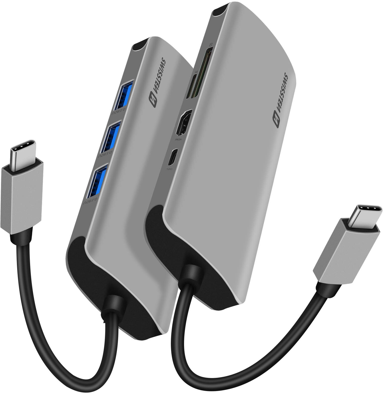 Swissten HUB 8 en 1 USB-C 3xUSB 1xUSB-C 1xHDMI 1xEthernet 1 SD Micro-SD - Gris