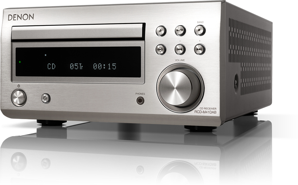 Denon D-M41DAB. Color del producto: Negro, Plata, Número de discos ópticos: 1 discos, Tipo de carga en disco: Bandeja. Potencia estimada RMS: 60 W, Tipo de altavoces: De 2 vías, Tipo de conectividad de bocina: Borne de conexión. Bandas de radio soportadas: DAB,DAB+,FM, Banda FM: 87,5 - 108 MHz. Tipo de visualizador: FL. Formatos de audio soportados: AAC,MP3,SBC,WMA, Tipos de discos soportados: CD,CD-R,CD-RW, Modo de reproducción: Azar, Repetir
