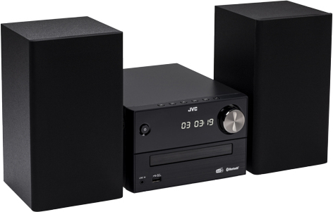 JVC UX-C25DAB. Tipo: Microcadena de música para uso doméstico, Color del producto: Negro, Número de discos ópticos: 1 discos. Potencia estimada RMS: 14 W, Rango de frecuencia: 30 - 20000 Hz. Bandas de radio soportadas: DAB+,FM, RDS: PTY, Banda FM: 87.5 - 108 MHz. Tipo de visualizador: LCD. Versión de Bluetooth: 4.2+EDR, alcance Bluetooth: 10 m