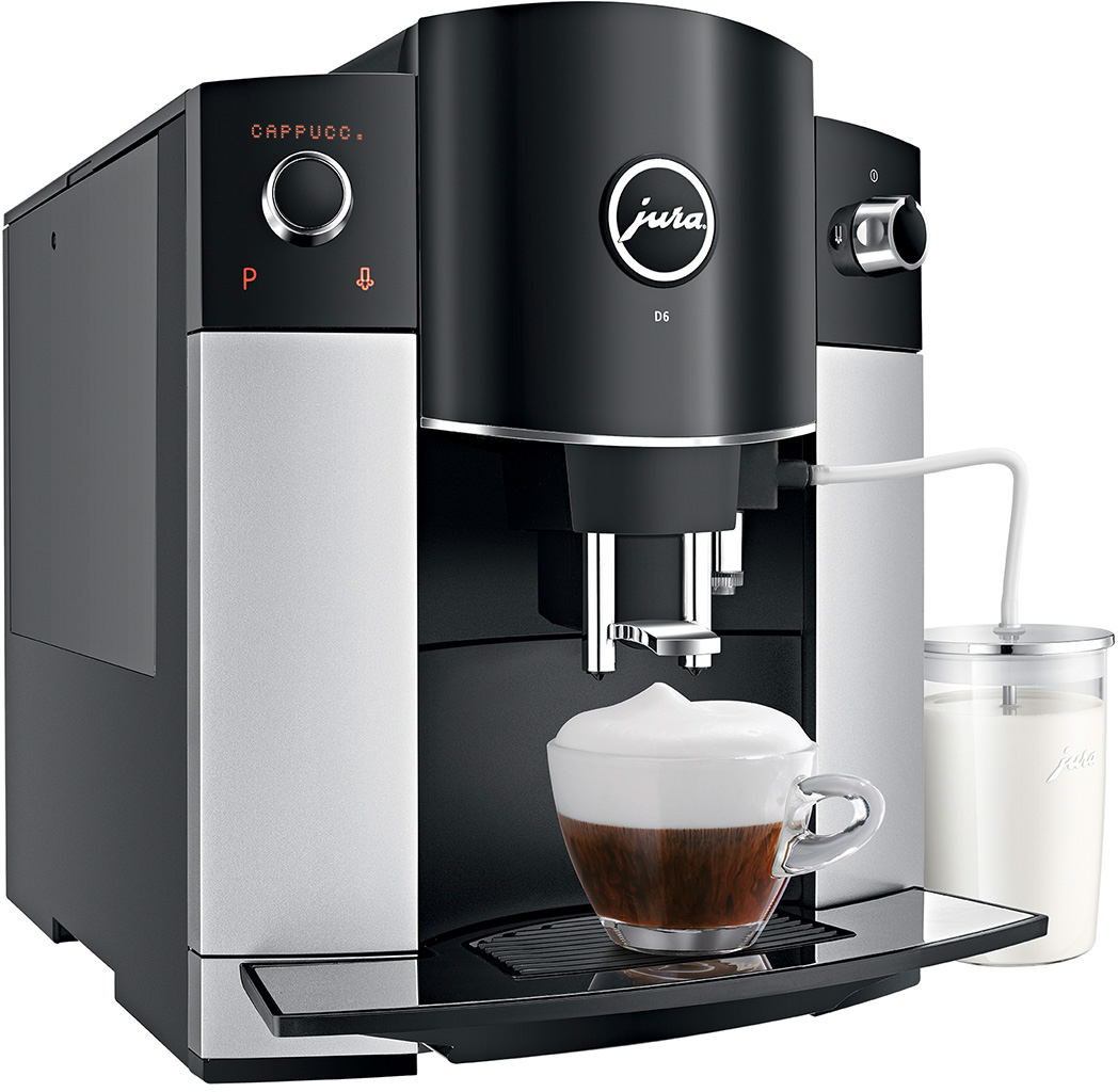 JURA D6. Tipo de producto: Máquina espresso, Máquina de café: Totalmente automática, Capacidad de reservorio de agua: 1,9 L, Café tipo de entrada: Granos de café, De café molido, Depósito para café preparado: Taza, Capacidad en tazas: 16 tazas, Número de surtidores: 2, Molinillo integrado. Potencia: 1450 W. Color del producto: Negro, Platino