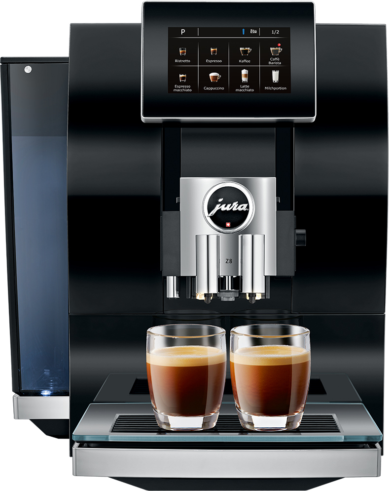 JURA Z8 Diamond Black. Tipo de producto: Máquina espresso, Máquina de café: Totalmente automática, Capacidad de reservorio de agua: 2,4 L, Café tipo de entrada: Granos de café, Depósito para café preparado: Taza, Capacidad en tazas: 20 tazas, Número de surtidores: 2, Molinillo integrado. Tipo de visualizador: TFT. Potencia: 2450 W. Color del producto: Negro