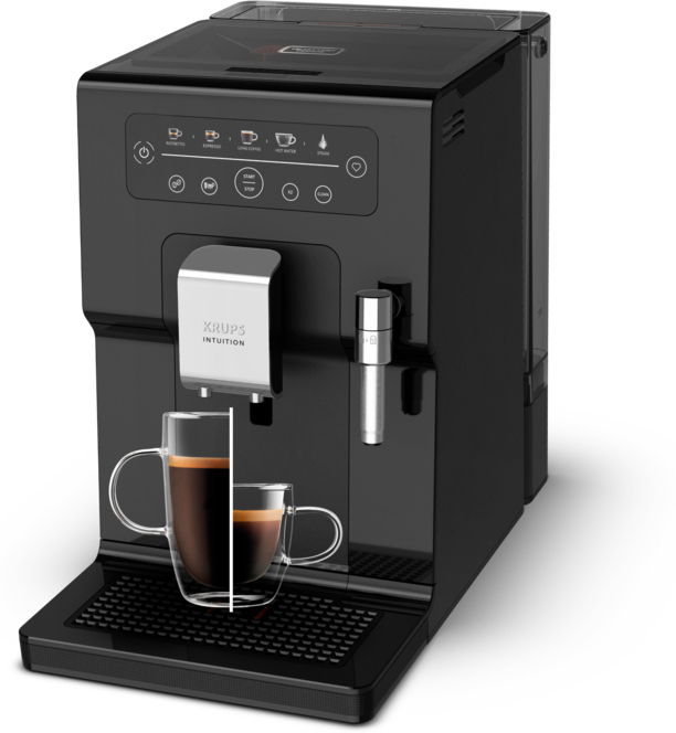 Krups Evidence EA870810. Tipo de producto: Máquina espresso, Máquina de café: Semi-automática, Capacidad de reservorio de agua: 3 L, Café tipo de entrada: Granos de café, Depósito para café preparado: Taza, Capacidad en tazas: 2 tazas, Molinillo integrado. Color del producto: Negro, Cromo