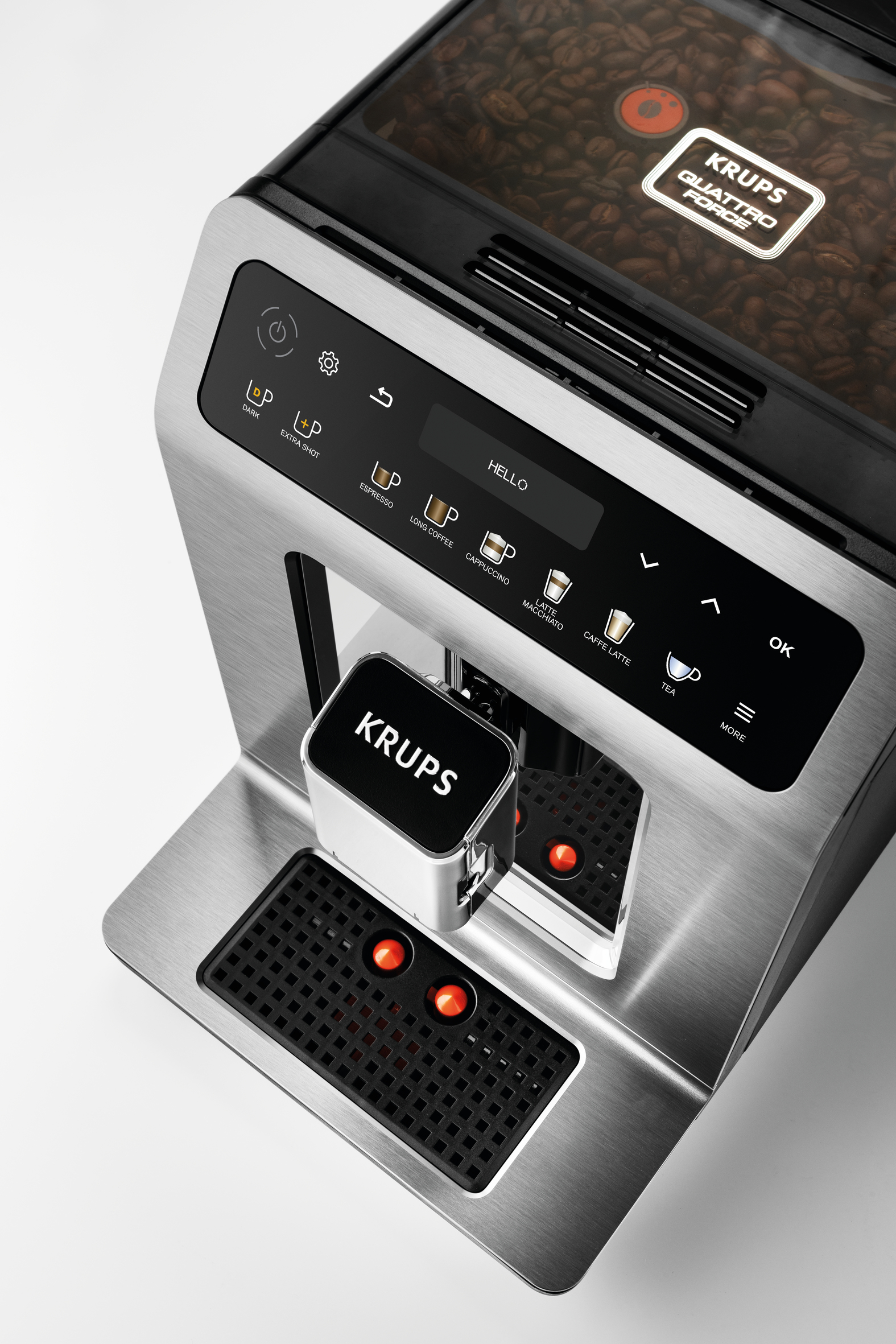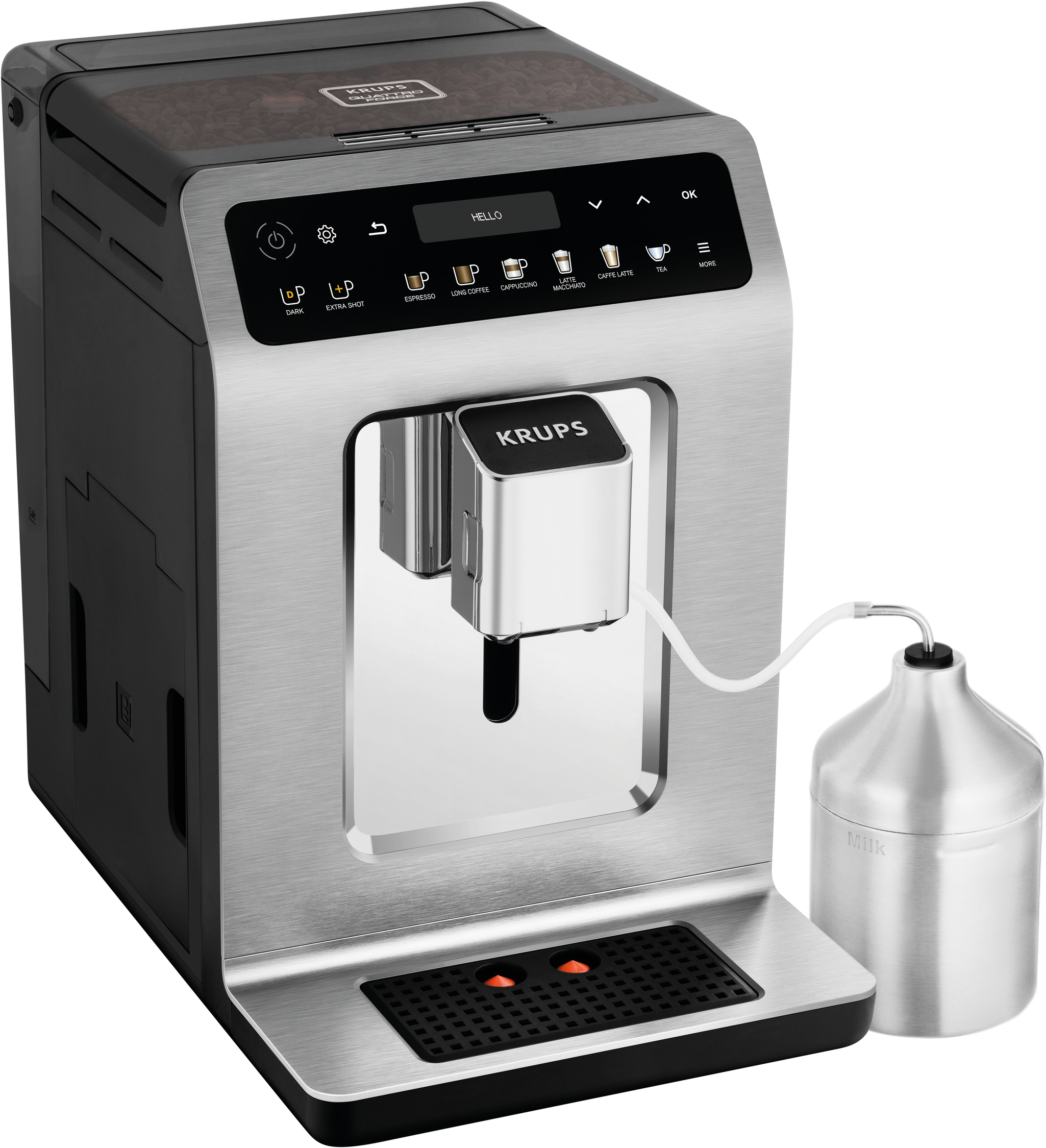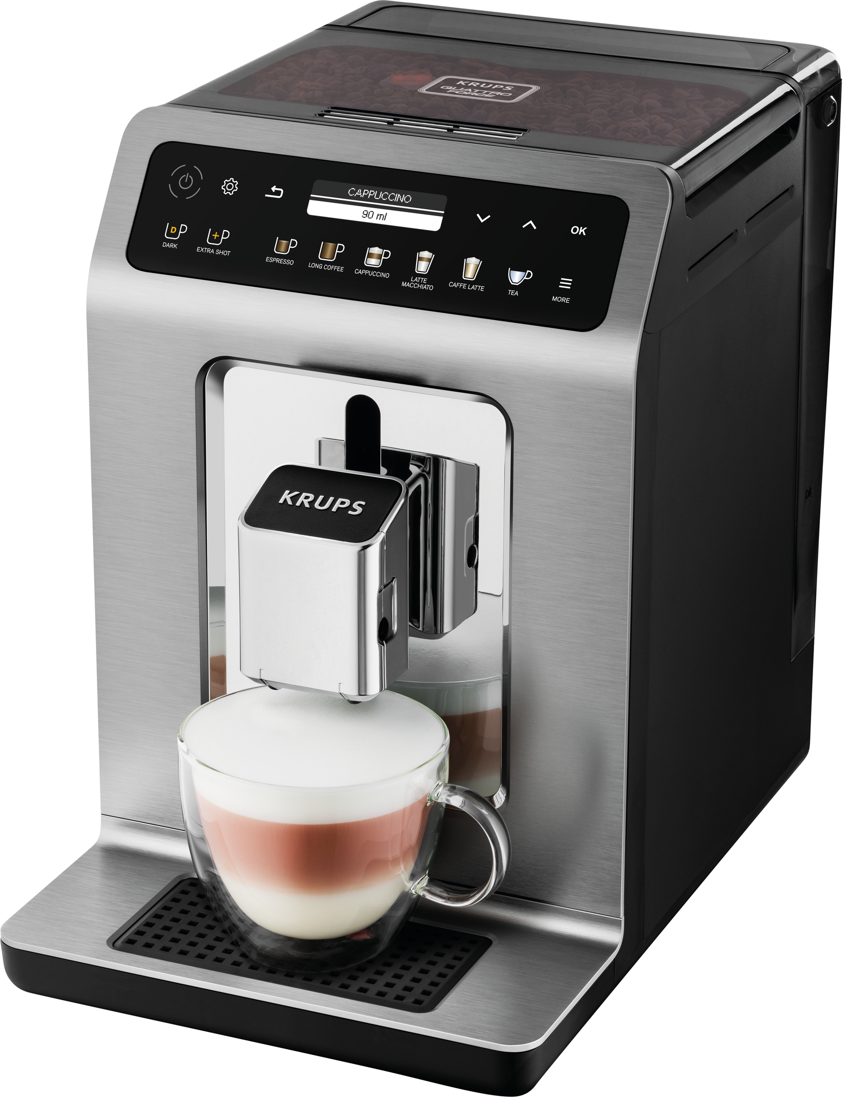 Krups Evidence EA894T. Tipo de producto: Máquina espresso, Máquina de café: Totalmente automática, Capacidad de reservorio de agua: 2,3 L, Depósito para café preparado: Taza, Capacidad en tazas: 2 tazas, Número de surtidores: 2, Molinillo integrado. Tipo de visualizador: OLED. Potencia: 1450 W. Color del producto: Titanio