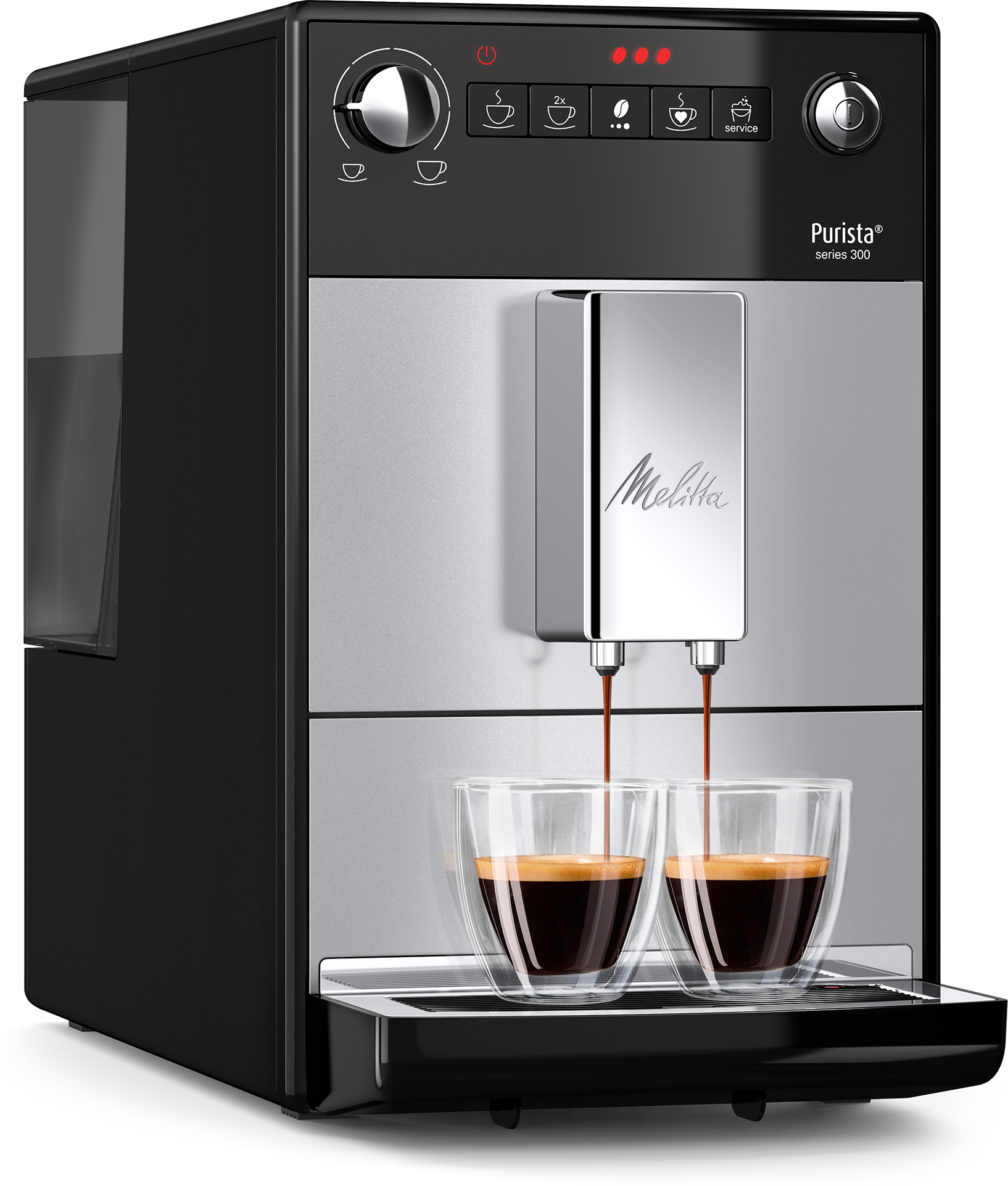 Melitta 6769697. Tipo de producto: Máquina espresso, Máquina de café: Totalmente automática, Capacidad de reservorio de agua: 1,2 L, Café tipo de entrada: De café molido, Depósito para café preparado: Taza, Número de surtidores: 2, Molinillo integrado. Tipo de visualizador: LCD. Potencia: 1450 W. Color del producto: Negro, Plata