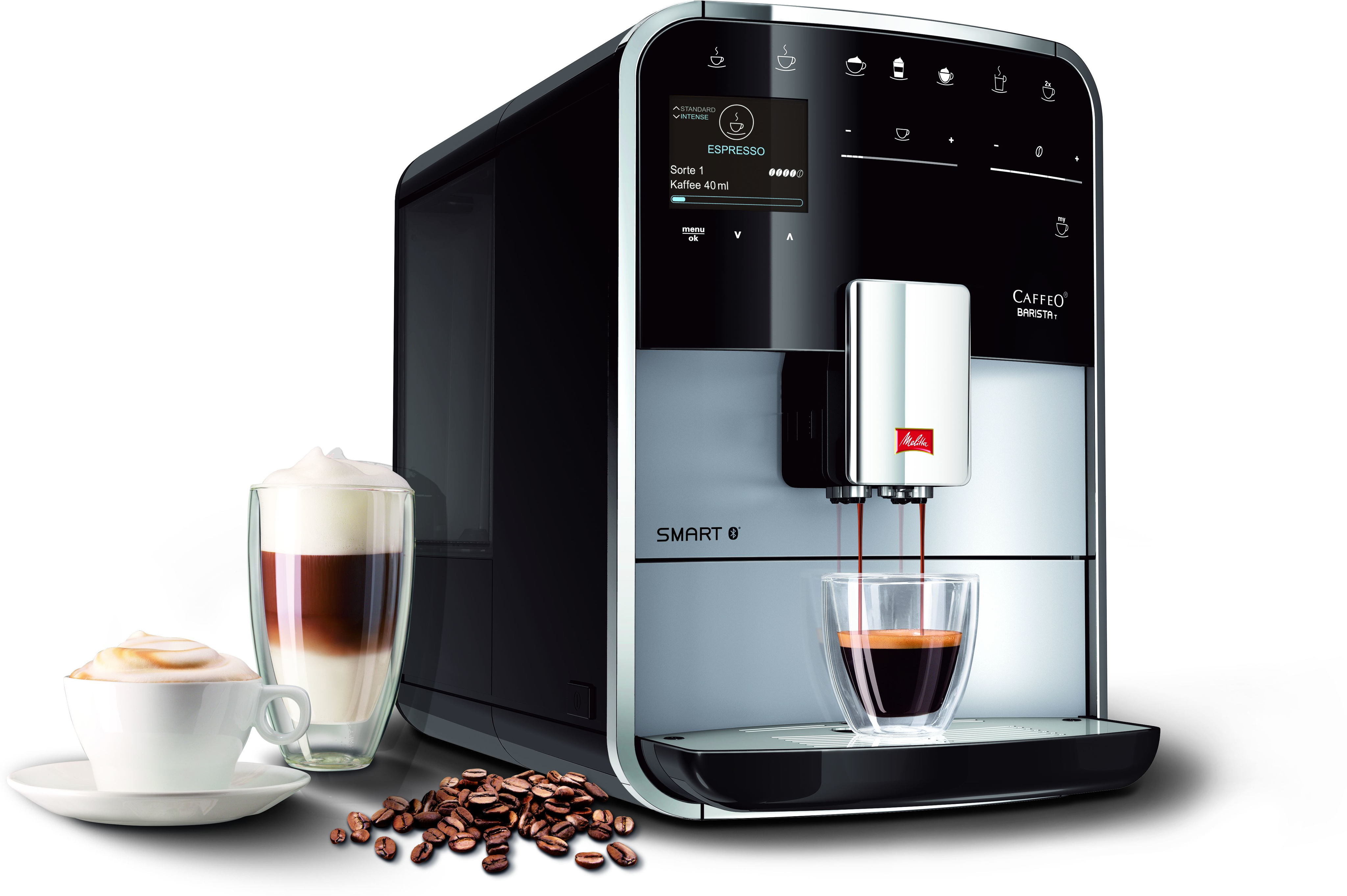 Melitta Barista Smart T. Tipo de producto: Máquina espresso, Capacidad de reservorio de agua: 1,8 L, Café tipo de entrada: De café molido, Depósito para café preparado: Taza, Número de surtidores: 2. Tipo de visualizador: TFT. Potencia: 1450 W. Color del producto: Plata