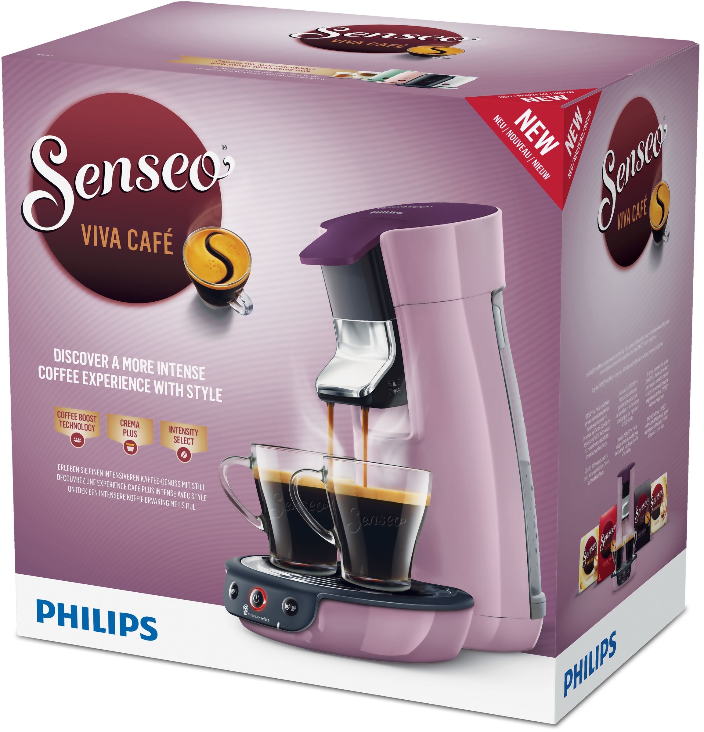 Senseo Viva Café HD6563/41. Diseño: Independiente, Tipo de producto: Máquina de café en cápsulas, Máquina de café: Totalmente automática, Capacidad de reservorio de agua: 0,9 L, Café tipo de entrada: Dosis de café, Depósito para café preparado: Taza, Capacidad en tazas: 6 tazas, Número de surtidores: 2. Potencia: 1450 W. Color del producto: Violeta