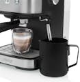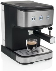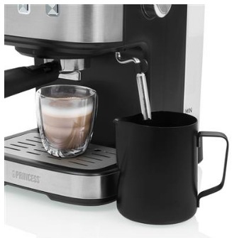 Nada mejor que el olor a café recién hecho por la mañana, ¿verdad? Con la cafetera espresso y de cápsulas 249413 de Princess, se sentirá como un barista en su propia casa. Gracias a esta cafetera de diseño elegante, podrá preparar un café espresso fuerte e intenso en casa. La bomba de 20 bares ofrece la presión perfecta para 1 o 2 tazas de café molido espresso. Además, viene equipada con un vaporizador de leche con el que podrá preparar un delicioso capuccino o latte macchiato. Con la cafetera espresso de Princess tendrá un trocito de Italia en su propia casa.\n\nDepósito de agua de 1,5 litros\nLlene el depósito transparente con agua mineral o del grifo y colóquelo en el soporte que está en la parte trasera de la cafetera espresso de Princess. El depósito de agua tiene una capacidad de 1,5 litros, así que no tendrá que volver a llenarlo después de preparar un delicioso espresso. Gracias al indicador del nivel de agua, podrá ver al instante si hay agua suficiente para una taza más.\n\nVaporizador de leche para un cappuccino delicioso\nLa cafetera espresso de Princess también tiene un vaporizador de leche para que pueda preparar deliciosas variantes de espresso con leche espumosa. Disfrute usted mismo o deleite a sus amigos y familiares con un delicioso cappuccino, un refinado latte macchiato o un estimulante espresso macchiato. La boquilla de vapor es muy fácil de limpiar.\n\nIncluye 3 filtros distintos\nLlene el filtro con la cantidad deseada de café molido (para una o dos tazas) y colóquelo en el soporte. Dicho soporte, también llamado pistón, tiene doble salida para que pueda preparar 2 tazas de espresso al mismo tiempo. Escoja su café molido favorito o utilice el molinillo 242196 de Princess para moler los granos y disfrutar del aroma más intenso y, por supuesto, del café más sabroso. Además, también puede usar el filtro especial para cápsulas de café. Con él podrá, por ejemplo, preparar de forma rápida y sencilla un delicioso café Nespresso®.\n\nBomba de lujo de 20 bares para obtener la presión perfecta\nA la hora de hacer un buen espresso, la presión a la que sale el agua que se mezcla con el café molido es, por supuesto, muy importante. La cafetera espresso de Princess tiene una bomba de alta calidad para garantizar una presión óptima. De esta forma, obtiene siempre un sabor intenso y un resultado perfecto.\n\nFácil de limpiar\nGracias a sus piezas desmontables, la cafetera espresso de Princess es fácil de limpiar. Para eliminar la cal, se puede añadir un producto descalcificador en el depósito lleno de agua y poner el aparato en marcha sin el soporte del filtro. Se recomienda hacerlo todos los meses para que el espresso siga siendo de la mejor calidad.