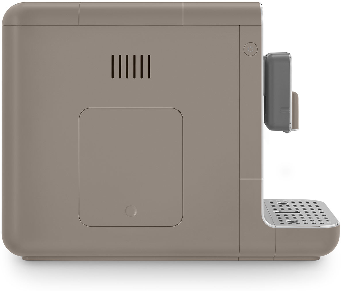 Smeg BCC01TPMEU. Tipo de producto: Máquina espresso, Máquina de café: Totalmente automática, Capacidad de reservorio de agua: 1,4 L, Café tipo de entrada: Granos de café, De café molido, Depósito para café preparado: Taza, Capacidad en tazas: 1 tazas, Molinillo integrado. Potencia: 1350 W. Color del producto: Gris pardo