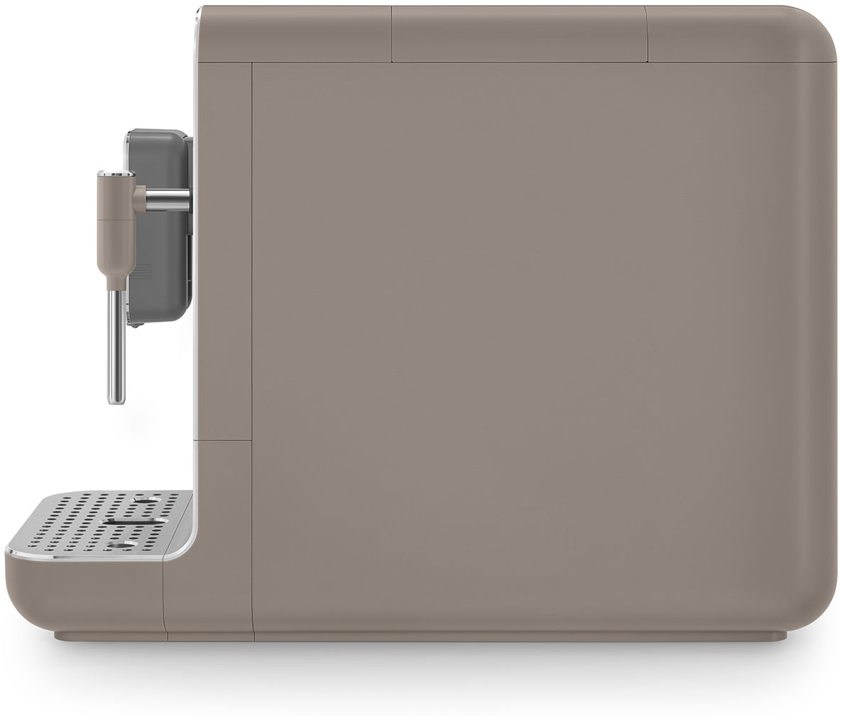 Smeg BCC02TPMEU. Tipo de producto: Máquina espresso, Máquina de café: Totalmente automática, Capacidad de reservorio de agua: 1,4 L, Café tipo de entrada: Granos de café, De café molido, Depósito para café preparado: Taza, Capacidad en tazas: 1 tazas, Molinillo integrado. Potencia: 1350 W. Color del producto: Gris pardo