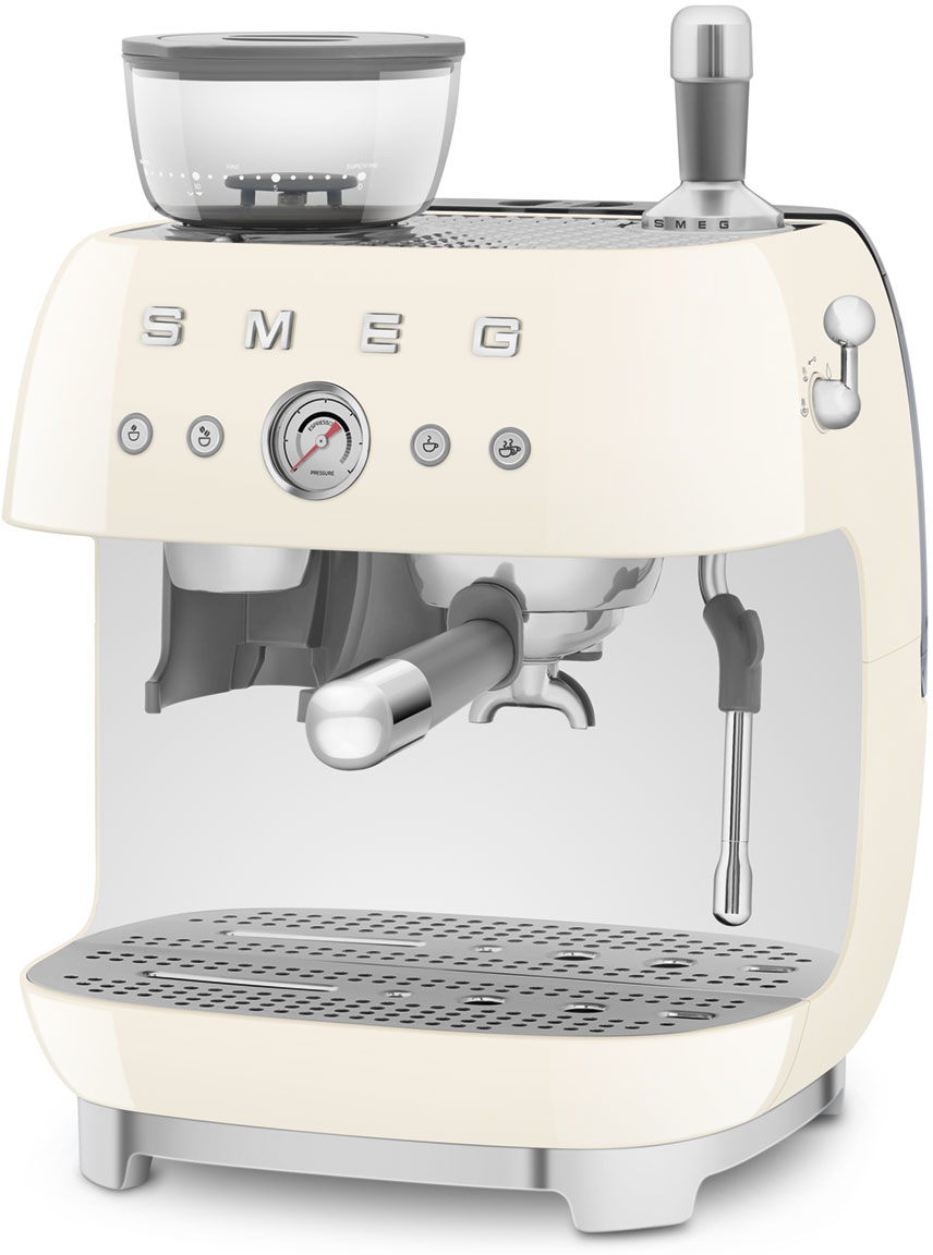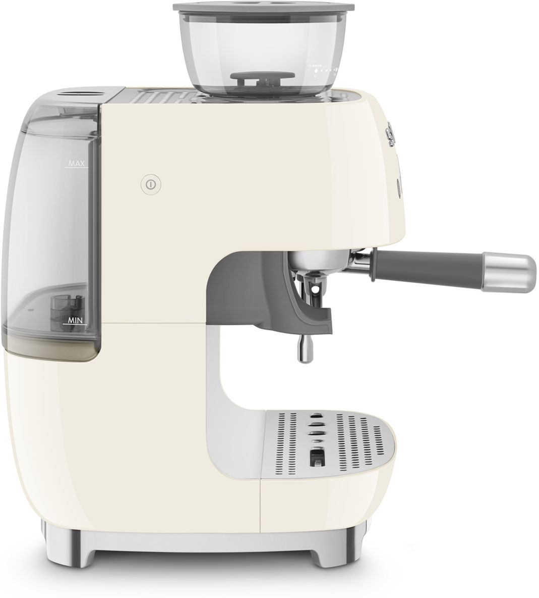 Smeg EGF03CREU. Tipo de producto: Máquina espresso, Máquina de café: Manual, Capacidad de reservorio de agua: 2,4 L, Café tipo de entrada: De café molido, Depósito para café preparado: Taza, Capacidad en tazas: 2 tazas, Número de surtidores: 2, Molinillo integrado. Tipo de visualizador: Analógica. Potencia: 1650 W. Color del producto: Crema de color