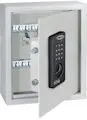 Armario para llaves electrónico Keytronic Armario para llaves de pared de acero de alta calidad, cuerpo de 2 mm, hoja de puerta de 3 mm, con cordón ignífugo y robustas bisagras. 4 agujeros en la pared trasera estándar. Incluido con el hardware de montaje está incluido Cerradura electrónica con 100 millones de posibilidades de código (hasta 8 dígitos), operación simple gracias a la llave grande y fácilmente legible, con apertura de emergencia