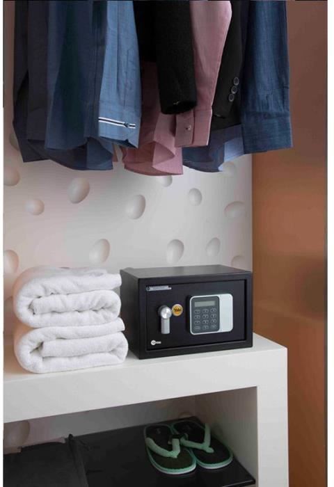 La caja fuerte de hotel Yale es una solución eficaz para proteger objetos de valor. Programable de 3…8 dígitos +100.000 combinaciones. Bloqueo seguro que bloquea la caja fuerte si el código es incorrecto. Asegurado por un código de usuario y un código maestro para mayor seguridad para el cliente y el hotelero.