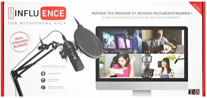 ¿Sueñas con crear un canal de Youtube, con hacer streaming en Twitch?Con el Pack T'nB, ¡convertirte en blogger, streamer y/o youtuber nunca ha sido tan fácil!Un pack ultracompleto para empezar, para sumergirte en el ambiente de un estudio real. Encuentra todos los accesorios esenciales para realizar tu pasión y revelar tus talentos. En este paquete: - Un micrófono de condensador XLE - El pie de micrófono y el