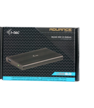 ADVANCE Series es la serie de los accesorios i-tec más avanzados que te facilitarán la utilización de las altas tecnologías de productos, con un diseño moderno y embalaje exclusivo.\n\ni-tec USB 3.0 MySafe AluBasic es una caja externa para todos los discos duros 2.5"" SATA I/II/III HDD o SSD cuya altura es hasta 9.5 mm. La conexión a través del USB 3.0 ofrece la transmisión rápida y fácil de los datos (hasta 5 Gbps). Está claro que es compatible de vuelta con USB 2.0. Armadura resistente, confeccionada en aluminio, para asegurar una evacuación óptima del calor igual que la protección del disco.