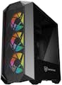 La nueva torre gaming RGB Nfortec Synistra sorprende por su principal y gran innovación: una instalación con diseño único en formato vertical. Gracias a sus características de torre gamer ATX 3.0 consigue una temperatura muy superior a una caja ATX estándar. Ríndete ante el salto hacia delante en hardware que supone Nfortec Synistra y lleva tu set-up al siguiente nivel.\n\nUna caja gaming que brilla con luz propia\nLa torre gamer Nfortec Synistra incluye tres ventiladores ARGB de 120 mm en su parte frontal. Gracias a su frontal mallado saltará a la vista la iluminación de tu torre gaming. Personaliza tus partidas y escoge entre sus más de 20 modos de iluminación que podrás controlar a través de la controladora ARGB incluida con la caja.\n\nVentilación ATX 3.0\nLa torre gaming Synistra cuenta con espacio para hasta 5 ventiladores. Es posible colocar 3 ventiladores de 120 mm o dos de 140 mm en la parte frontal y en su parte trasera hay espacio para dos ventiladores de 120 mm o dos de 140 mm. El flujo de aire de Nfortec Synistra da un paso al frente respecto a otros modelos de cajas para pc ATX. Gracias los tres ventiladores RGB de 120 mm que vienen incluidos de serie, su frontal mallado y su tecnología 3.0 ATX es capaz de reducir en 8 grados la temperatura que proporciona una torre gaming ATX normal y corriente. Complementa tu PC con la refrigeración líquida Hydrus V2 o con el disipador de aire Centaurus y despreocúpate de la temperatura del resto de tus componentes.\n\nInnovación hardware: instalación en vertical\nNuestra nueva torre gamer Nfortec Synistra te sorprenderá por ser la primera caja de la familia Nfortec que cuenta con una instalación con un diseño único en formato vertical. Si quieres salir de la rutina del habitual montaje de un pc gaming y lanzarte a la piscina de una torre más amplia y con más espacio para tus componentes, Synistra es tu mejor opcion. Da ese salto de calidad que tu set-up necesita y profesionaliza tu ordenador.\n\nCuadro de mandos de tu torre para PC\nDesde la parte superior de la torre para ordenador Nfortec Synistra tendrás acceso a todas sus funcionalidades y opciones. Conecta tus altavoces o auriculares gracias al jack HD de 3.5mm incorporado, enciende y apaga la torre gaming con el botón Power, reinicia con el botón Reset y controla sus hasta más de 20 efectos diferentes de iluminación con la controladora que incluye. Conecta hasta dos periféricos en tu torre para PC Synistra gracias a sus dos puertos USB 3.0.\n\nSynistra, nuestra torre gaming más espaciosa\nLa torre gaming Nfortec Synistra cuenta con un montaje fácil, rápido y por primera vez en nuestra familia de torres gamer, en vertical. Aprovecha su amplio espacio para colocar todos tus componentes, Synistra es nuestra torre más grande y espaciosa. En su interior podremos colocar tarjetas gráficas de hasta 320 mm o Cooler con altura máxima de 167 mm. Su bahía independiente inferior tiene capacidad para fuentes de aliment