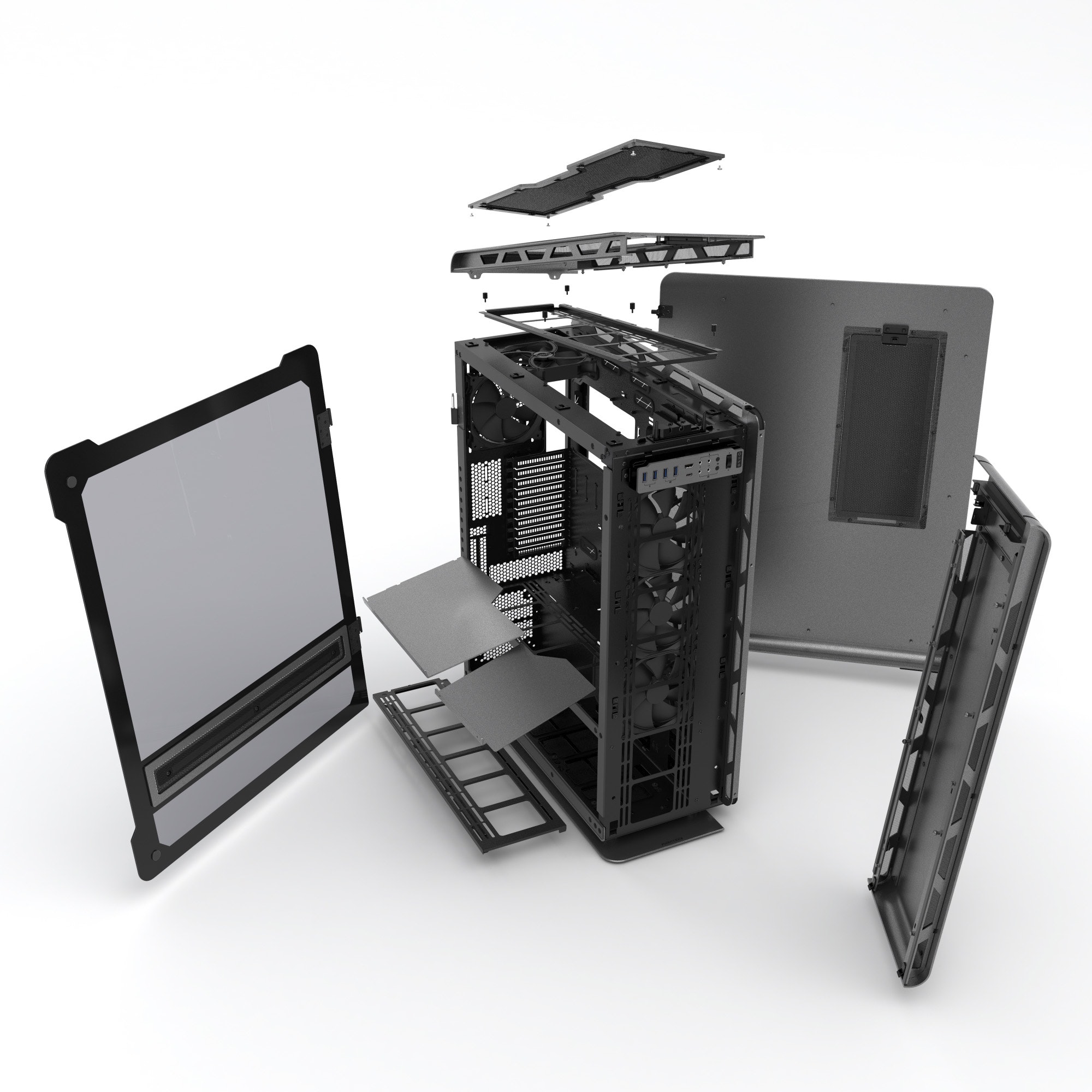 Phanteks Enthoo Elite. Factor de forma: Full-Tower, Tipo: PC, Material: Aluminio, Acero, Vidrio templado. Ubicación de fuente de alimentación: Fondo. Ventiladores frontales instalados: 3x 140 mm, Diámetro de ventiladores frontales soportados: 120,140 mm, Diámetro de ventiladores secundarios soportados: 120,140 mm. Tamaños de disco duro soportados: 2.5,3.5"". Ancho: 270 mm, Profundidad: 615 mm, Altura: 750 mm