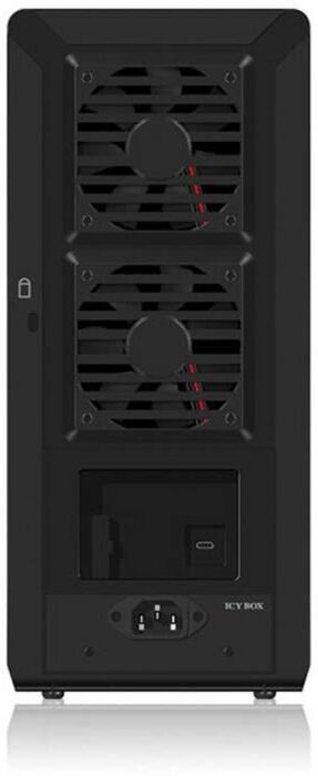 Solución de almacenamiento USB tipo C Este gabinete de almacenamiento externo puede acomodar hasta 8 unidades de 2,5 o 3,5 pulgadas. Un cuerpo de aluminio resistente permite una disipación de calor eficiente y los ventiladores traseros con control de temperatura mantienen las unidades frescas durante largas horas de funcionamiento