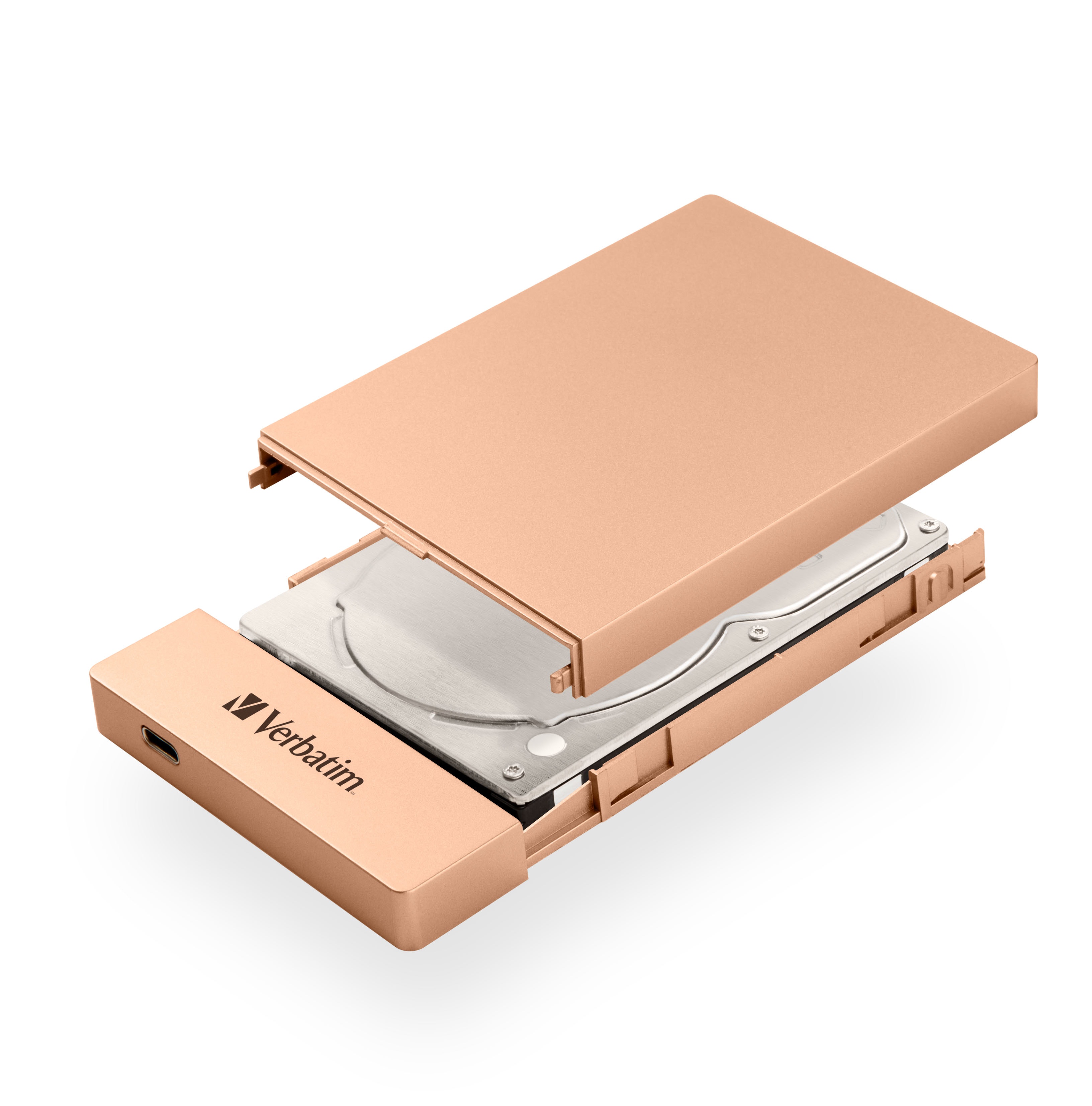 Convierta su antiguo disco duro interno o unidad de estado sólido interna en una elegante unidad externa con uno de los kits de carcasa de Verbatim.\n\nContiene todo lo que necesita para convertir un disco duro interno SATA de 2,5"" (9,5 mm de alto) o una unidad de estado sólido interna estándar (7 mm de alto) en su propio disco externo.\n\nMontaje sencillo: solo debe colocar a presión el disco duro SATA o la unidad SSD en la base de la carcasa y luego colocar la parte superior de la carcasa. No hacen falta tornillos ni conocimientos técnicos avanzados. La unidad ya está lista para usarse.