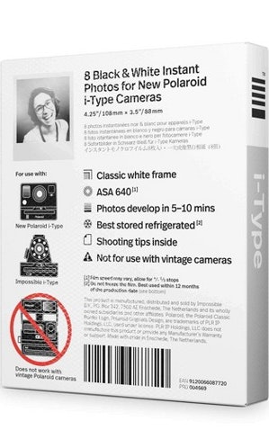 Polaroid B&W i-Type Film. Cantidad por paquete: 8 pieza(s)