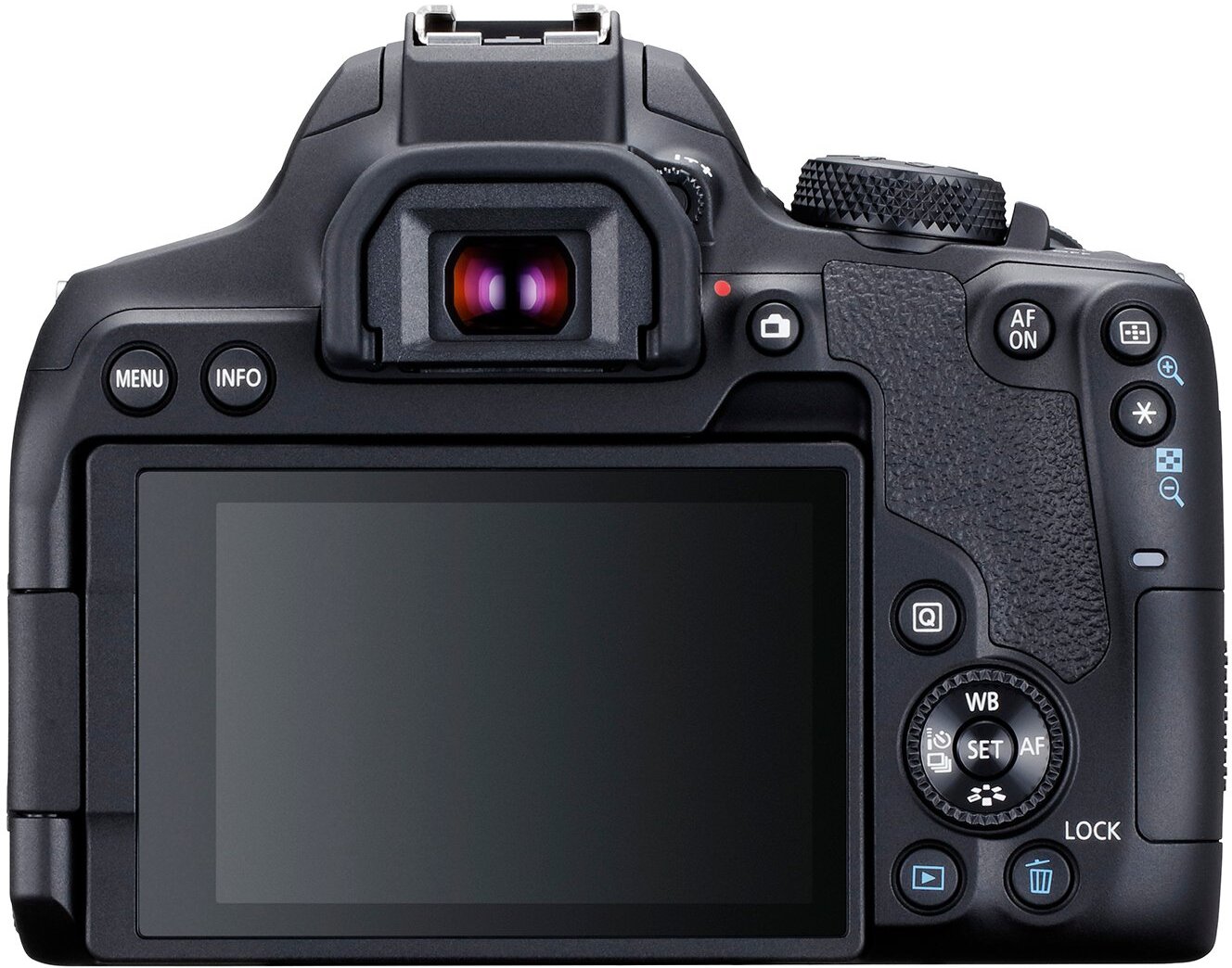 Canon EOS 850D. Tipo de cámara: Cuerpo de la cámara SLR, Megapixeles: 24,1 MP, Tipo de sensor: CMOS, Máxima resolución de imagen: 6000 x 4000 Pixeles. Sensibilidad ISO (max): 25600. Velocidad máxima del obturador: 1/4000 s. Wifi. Tipo HD: 4K Ultra HD, Máxima resolución de video: 3840 x 2160 Pixeles. Diagonal de la pantalla: 7,62 cm (3""), Pantalla táctil. tipo de visor de imágen: Óptico, Pentaespejo. PictBridge. Color del producto: Negro