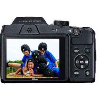 Obtenga una calidad de imagen impresionante de manera sencilla con la Nikon COOLPIX B500.\nExplore la potencia del objetivo NIKKOR con zoom óptico de 40 aumentos, ampliable hasta un Dynamic Fine Zoom¹ de 80 aumentos, que le situará en el centro de la acción gracias a la adición del control lateral del zoom, que proporciona una estabilidad excelente. Obtenga un punto de vista único con la pantalla LCD abatible vertical de alta definición, vuelva a capturar sujetos fácilmente con el botón del zoom de retroceso rápido y mantenga la cámara conectada a su dispositivo inteligente con SnapBridge. Su intuitivo funcionamiento simplifica el disparo y permite acceder a las funciones de uso más frecuente a través del dial de modo, mientras que su diseño clásico ofrece un agarre cómodo.\nLa COOLPIX B500 de 16 megapíxeles le ayuda a capturar la vida desde un ángulo creativo.\n\nFUNCIONAMIENTO SENCILLO E INTUITIVO CON UNA CALIDAD DE IMAGEN SUPERIOR\n\nDisfrute de la facilidad de funcionamiento con excelentes resultados garantizados, para que pueda concentrarse en la composición creativa. Las funciones de uso más frecuente están al alcance de la mano a través del dial de modo; además, una gran cantidad de funciones le permiten obtener impresionantes vídeos de máxima definición (Full HD, 1080p/60i) y fotos increíbles de sus viajes y aficiones (como la observación de aves y la astronomía) de manera sencilla. Con 16 megapíxeles y un sensor CMOS retroiluminado de alta eficacia, capturará el tipo de imágenes de alta calidad que siempre había deseado conseguir; además, podrá seguir disparando en cualquier lugar al que vaya, puesto que la cámara se alimenta con pilas AA que se pueden adquirir fácilmente en cualquier parte del mundo.\n\nOBJETIVO NIKKOR CON ZOOM ÓPTICO DE 40 AUMENTOS\n\nCapture toda la acción de los eventos deportivos, dispare a los sujetos distantes con detalles definidos en un paisaje urbano o tome instantáneas extraordinariamente nítidas de la luna y el cielo nocturno gracias al objetivo NIKKOR con zoom óptico de 40 aumentos, ampliable hasta un Dynamic Fine Zoom¹ de 80 aumentos. Los fiables objetivos ópticos NIKKOR ofrecen un rendimiento excepcional, para que pueda disfrutar de un potente objetivo que cubre los ángulos de visión desde gran angular de 22,5 mm hasta superteleobjetivo de 900 mm (equivalente a las distancias focales en formato de 35 mm) en una cámara compacta.\n\nREDUCCIÓN DE LA VIBRACIÓN (VR) DE ALTO RENDIMIENTO\n\nLa estabilidad de la cámara es la clave para conseguir unas imágenes nítidas. La función VR de alto rendimiento suprime eficazmente el efecto difuminado causado por las sacudidas de la cámara, incluso con el zoom de 40 aumentos a máxima potencia, para garantizar unas imágenes definidas. El efecto de la función VR de desplazamiento de lente es equivalente a un incremento de 3 pasos en la velocidad de obturación (según el estándar de la CIPA, en la posición de teleobjetivo máximo); además, la empuñadura de f