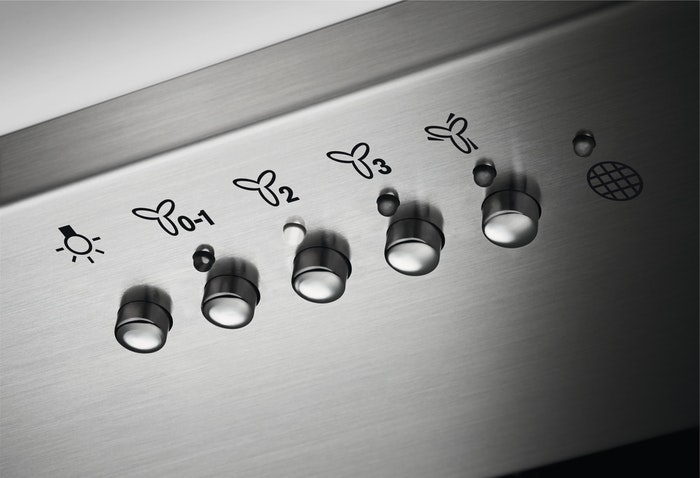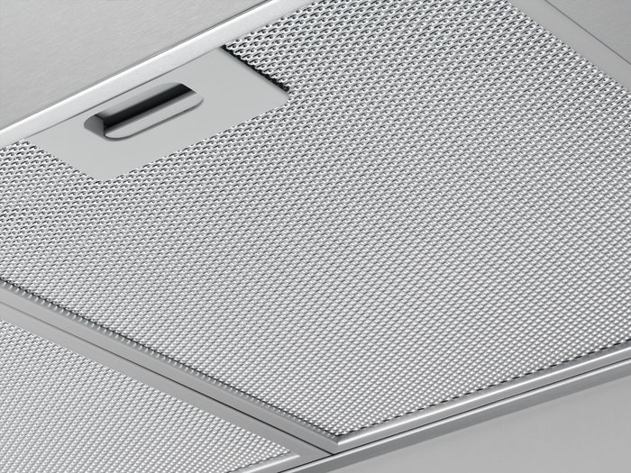 AEG DGE5661HM. Máxima capacidad de extracción: 700 m³/h, Potencia recirculante máxima: 580 m³/h, Nivel de ruido (velocidad intensiva): 70 dB. Tipo: Encastrada, Color del producto: Acero inoxidable, Tipo de control: Botones. Tipo de filtro de grasa: Aluminio. Clase de eficiencia de energía: A, Potencia del motor: 5 W, Voltaje de entrada AC: 220 - 240 V. Ancho: 540 mm, Profundidad: 300 mm, Altura (máx.): 33,1 cm