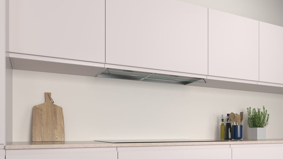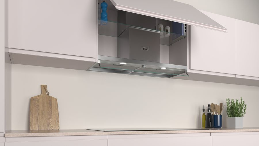Con la visera de cristal, tus muebles siempre estarán protegidos.\nEsta campana pasará totalmente desapercibida mientras no la uses, ya que queda completamente integrada en el mueble, y cuando cocines, ¡su visera de cristal se encargará de proteger tus muebles de vapores y humos! Además, gracias a su diseño podrás aprovechar el espacio del mueble superior para almacenar lo que más te guste.\n\nInstalación en recirculación: la solución cuando tu cocina no tiene salida de humos.\nSi tu cocina no tiene salida de humos o la que hay no es adecuada, no te preocupes: todas las campanas Balay pueden instalarse en recirculación. Solo necesitas un filtro especial y listo. La campana extrae el humo y el vapor que se producen mientras cocinas y devuelve a la estancia el aire totalmente limpio de grasa y olores. Además, es un sistema muy eficiente ya que no se desperdicia el calor de la calefacción ni el aire acondicionado.\n\nIluminación LED: cuando sepas lo que ahorran, lo verás todo más claro.\nCon la iluminación LED no solo verás mejor y durante más tiempo. También es con diferencia la más eficiente, es decir, que reduce considerablemente el consumo eléctrico frente a los sistemas halógenos. Y todo esto sin perder ni un ápice de calidad en la iluminación. ¿Cómo lo ves?\n\nCon esta capacidad de extracción no importa lo que estés cocinando\nSeguro que el aroma de tus recetas es irresistible, pero a la hora de cocinar es mucho más cómodo que el espacio esté libre de humos, olores y vapor. Y esto se consigue con una campana como esta, con un motor potente y eficaz, que te asegure una gran potencia de extracción.