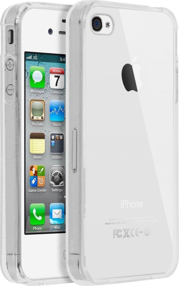 Carcasa crystal ultra-clear + bumper Mocca para iPhone 4 / 4S. Dos materiales: trasera de policarbonato antiarañazos y bordes de silicona antigolpes. Transparente, no afecta al diseño original