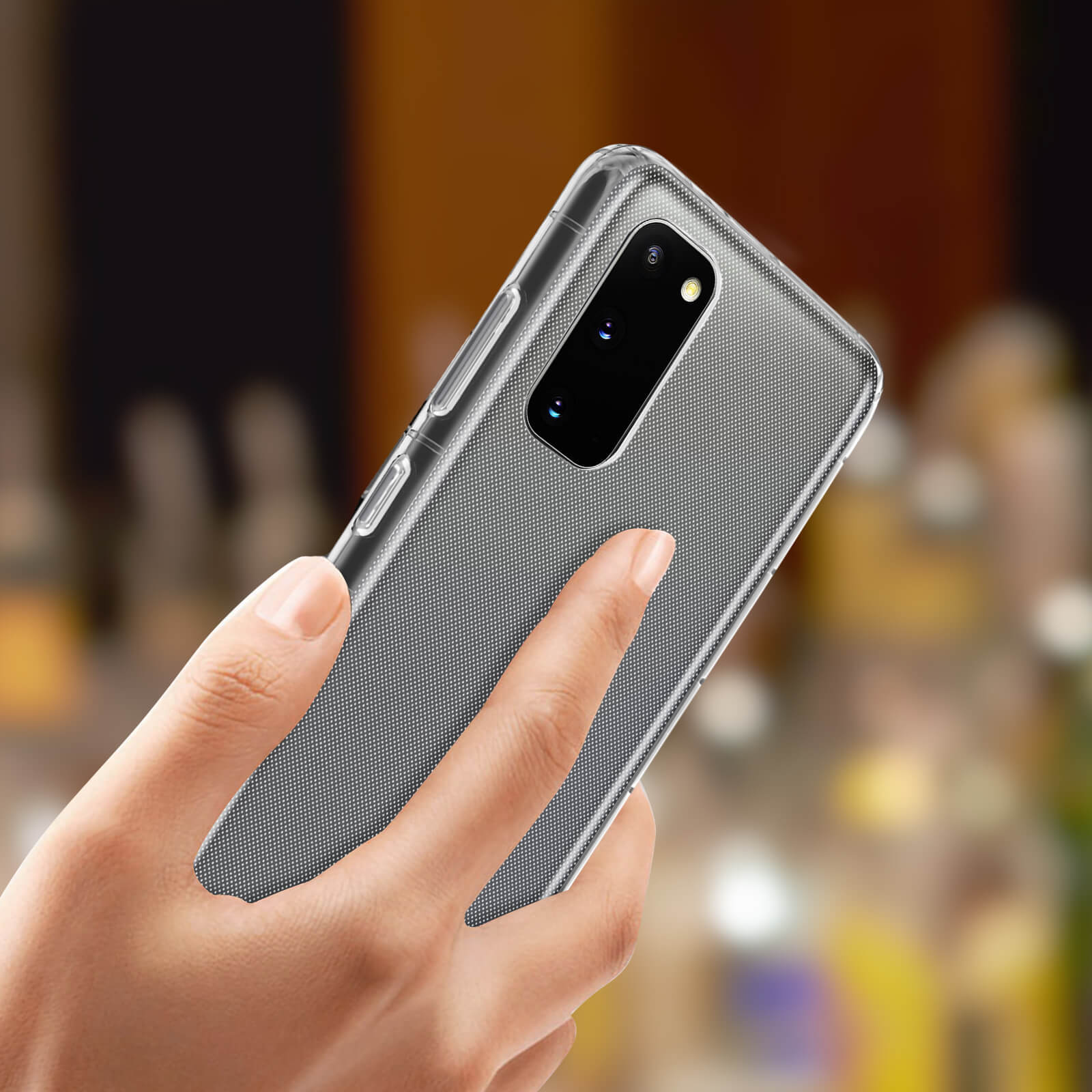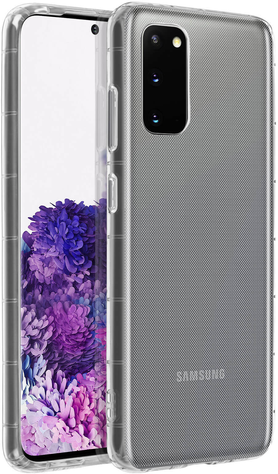 Carcasa bumper para proteger a tu Samsung Galaxy S20 todos los días. Protección flexible reforzada por contornos bumper de silicona. Transparente. Puertos y cámara accesibles gracias a sendas aberturas.