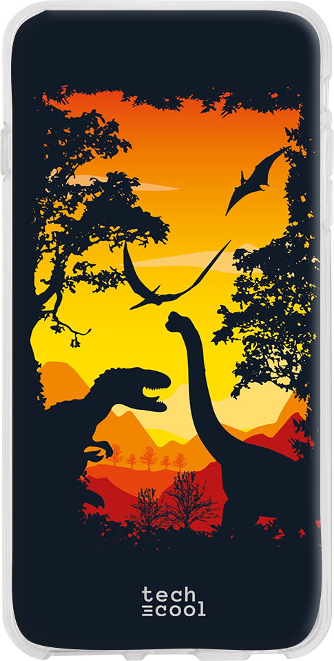 Generic Techcool® Funda, Carcasa Silicona para Samsung Galaxy J6 plus / J6+ l Diseño pelicula Jurassic world dinosaurios fondo naranja