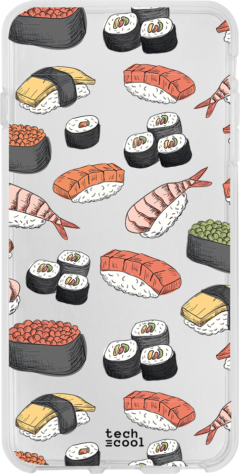 Generic Techcool® Funda, Carcasa Silicona para Samsung Galaxy Note 10 l Patron dibujo sushi fondo transparente