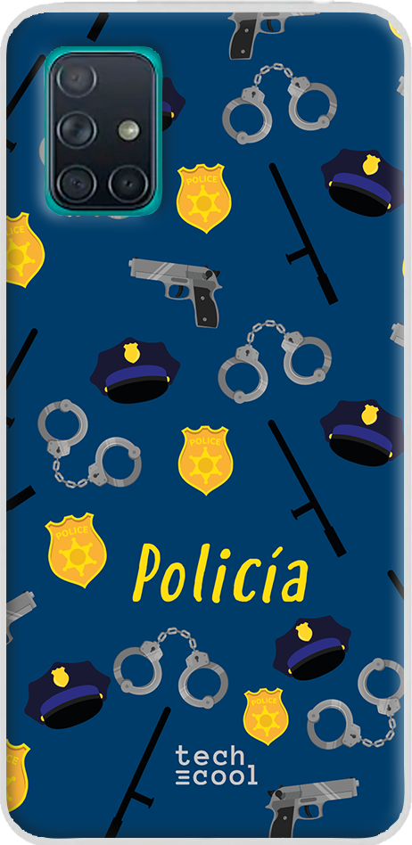 Generic Techcool® Funda silicona para Samsung Galaxy A71 l Carcasa Profesiones Policia fondo azul
