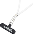 Con sistema de fijación mediante una tarjeta (incluida) que se introduce en la funda o carcasa del smartphone, y de la que sale una pieza de plástico a la que se engancha el cordón.