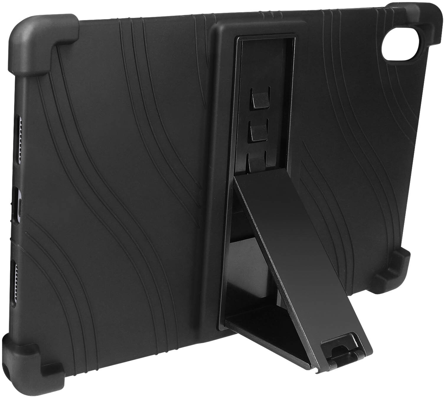 Funda de silicona para Huawei MatePad 11.5 con esquinas de protección. Soporte retráctil. Bordes elevados para la pantalla y la cámara. Interior en forma de panal que refrigera el calor. Revestimiento antideslizante. Funciones accesibles. • Características y Puntos fuertes: Funda de silicona negra diseñada para proteger eficazmente tu Huawei MatePad 11.5. Soporte retráctil integrado en la parte trasera para apoyar tu tablet. Posición ajustable para un ángulo de visión óptimo. Diseño flexible con esquinas parachoques que absorben golpes y arañazos