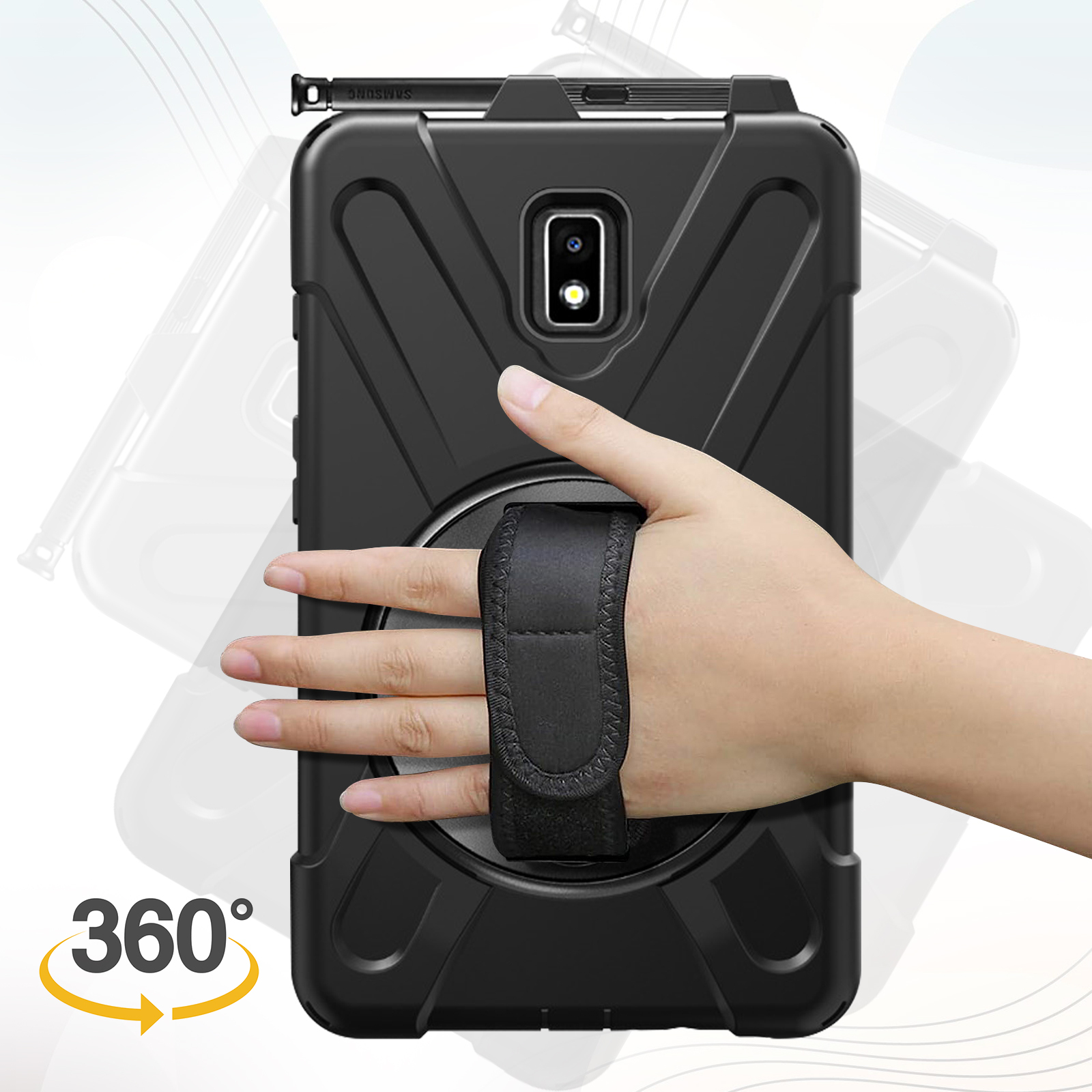 Avizar Funda Samsung Tab Active 2 Soporte con asa giratoria de doble material Negro