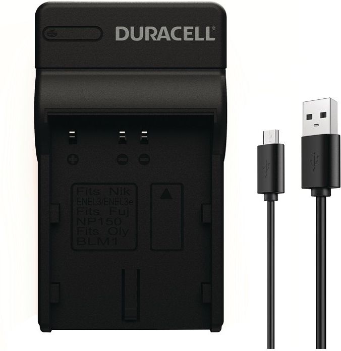 Duracell DRN5924. Alimentación: USB, Productos compatibles: Nikon EN-EL3e, FujiFilm NP-150. Color del producto: Negro. Tipo: Cargador de baterías para interior. Voltaje de entrada: 5 V. Voltaje de la pila: 5 V