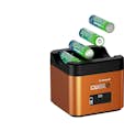 . Tecnología de baterías compatibles: Ión de litio, Níquel-metal hidruro (NiMH), Tamaño de baterías compatibles: AA, Productos compatibles: Sony DMW-PLC12, Sony BLF19, Sony BLG10 & NP-W126. Color del producto: Naranja, Tecnología de visualización: LCD, Indicadores LED: Carga. Tipo: Cargador de baterías para interior/coche