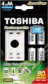 Toshiba TNHC-6GME4 CB. Alimentación: Corriente alterna, Tecnología de baterías compatibles: Níquel-metal hidruro (NiMH), Tamaño de baterías compatibles: AA. Color del producto: Blanco. Tipo: Cargador de baterías para interior, País de origen: China. Tamaño de la pila: AA, Tecnología de batería: Níquel-metal hidruro (NiMH), Capacidad de batería: 2000 mAh. Cantidad por paquete: 1 pieza(s), Ancho del paquete: 97 mm, Profundidad del paquete: 140 mm