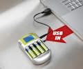 . Alimentación: Corriente alterna, Encendedor de cigarrillos, Tecnología de baterías compatibles: Níquel-metal hidruro (NiMH), Tamaño de baterías compatibles: AA, AAA. Color del producto: Azul, Plata, Tecnología de visualización: LCD. Tipo: Cargador de baterías para interior/coche. Voltaje de entrada: 100 - 240 V, Tiempo de recarga de la batería: 4 h. Número de baterías incluidas: 4 pieza(s)