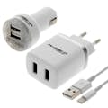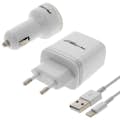 Akashi Cargador 2x USB + cargador coche 2.1A 2x USB + Cable iPhone, - Blanco