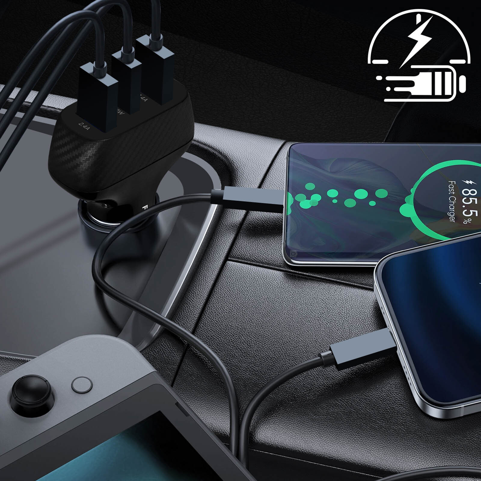 Cargador mechero 2x USB + USB-C con tecnología Quick Charge 3.0 y Power Delivery. Potencia total de salida de 37W. Permite cargar tres dispositivos al mismo tiempo. Acabado de carbono elegante. Sistema de protección de carga integrado. Diseño compacto.