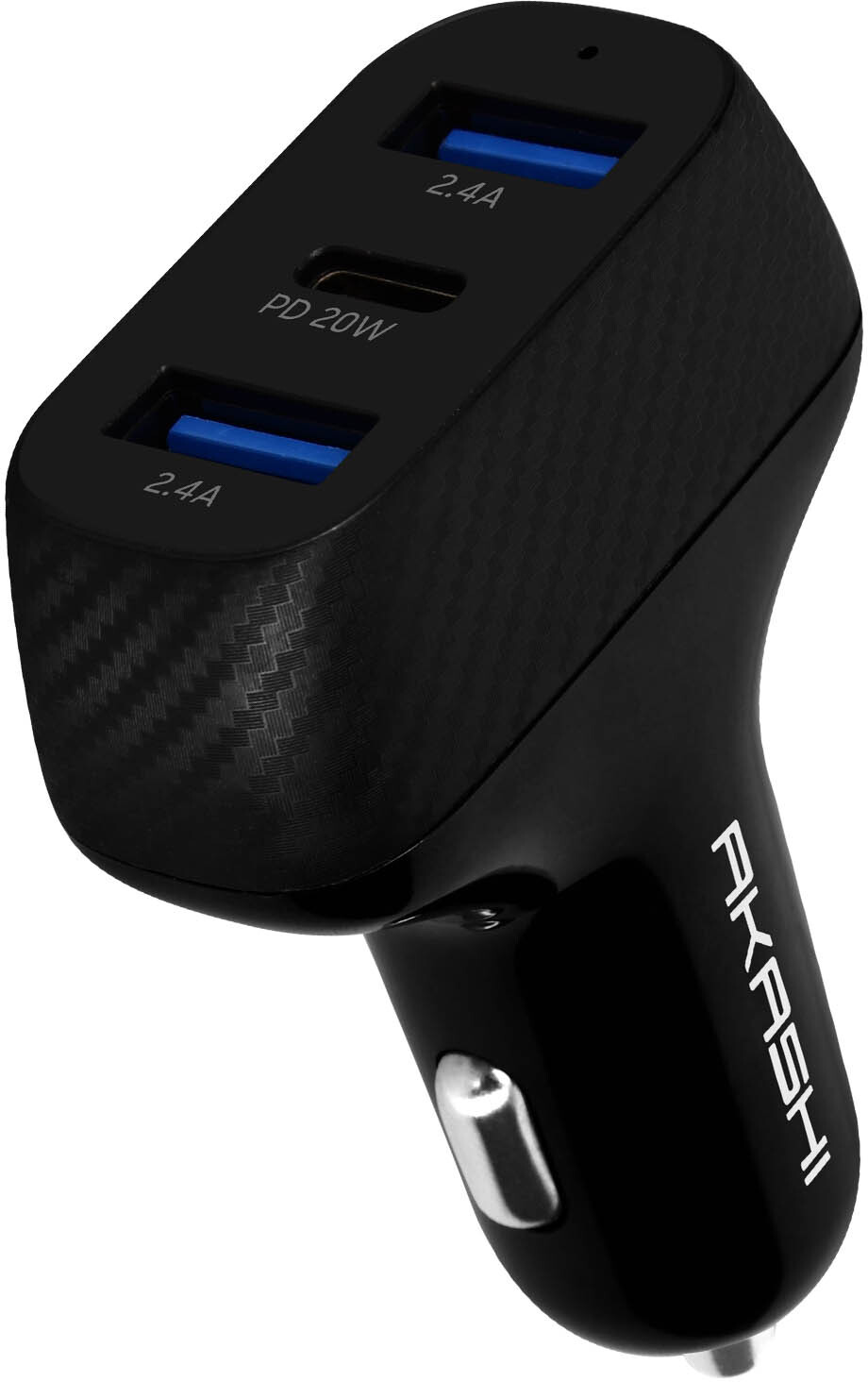 Akashi Cargador Coche 37W 2x USB 3.0 + 1x USB-C Power Del