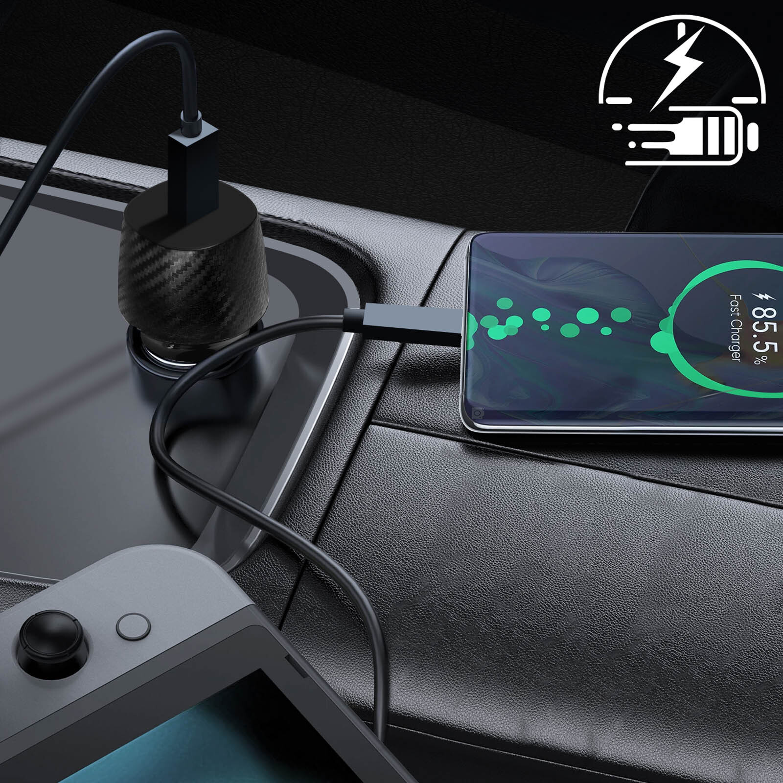 Avizar Cargador Coche USB-C Potencia 20W Acabado Carbono