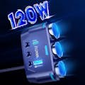 Distribuidor cargador de coche con 3 puertos para mechero. Potencia de 120 W para una recarga óptima. Botón independiente para cada puerto. 1x puerto USB Quick Charge y 1x puerto USB C Power Delivery. Pantalla LED, control de voltaje. Cable de 70 cm.Características y Puntos fuertes: Un divisor de cargador de coche azul medianoche que te permite cargar varios dispositivos simultáneamente3 puertos integrados en el encendedor para conectar 3 cargadores de cochePotencia total de 120 W para una alimentación óptima y fiable de sus aparatosCada puerto del encendedor tiene su propio botón de encendido y apagado.