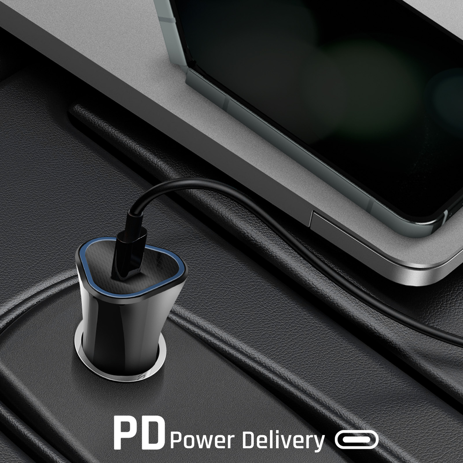 Cargador de coche USB-C de 20 W de Blue Star. Con tecnología Power Delivery para una carga rápida y segura. Ajusta la potencia de carga a las necesidades de tu dispositivo. Diseño compacto y ordenado. Indicador LED integrado. Fácil de utilizar.Características y Puntos fuertes: Cargador de coche negro de Blue Star, para mantener tu dispositivo cargado en cada viajePuerto USB-C Power Delivery de 20 W para una carga ultrarrápida y altamente eficiente.Equipado con protección contra sobretensiones y cortocircuitos para garantizar una recarga segura.Ajusta automáticamente la potencia de carga a las necesidades específicas del dispositivo conectado.