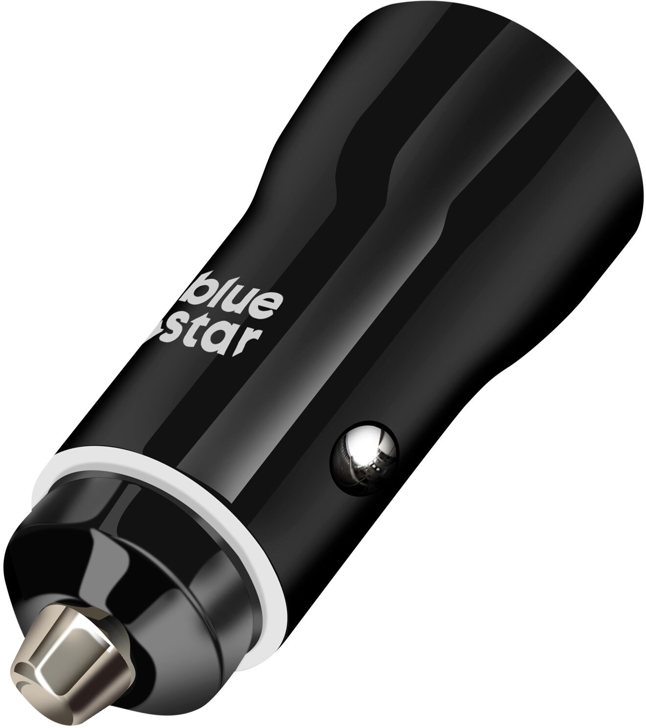 Cargador de coche de Blue Star. Incluye un puerto USB-C Power Delivery de 25 W y un puerto USB Quick Charge de 18 W. Ajusta la potencia de carga para adaptarse a las necesidades de tu dispositivo. Se suministra con un cable USB-C a USB-C de 60 W para uso inmediato. Diseño compacto y ordenado. Indicador LED integrado. Fácil de usar.Características y Puntos fuertes: El cargador de coche negro de Blue Star combina rendimiento y elegancia para optimizar tus viajesEquipado con un puerto USB-C Power Delivery de 25 W y un puerto USB Quick Charge de 18 W para cargar simultáneamente 2 dispositivos.Protección integrada contra sobretensiones y cortocircuitos para garantizar una carga fiable.Ajusta automáticamente la potencia de carga a las necesidades específicas del dispositivo conectado.